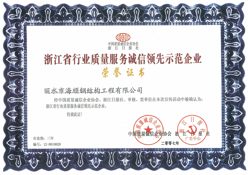 公司本著“質(zhì)以誠信、量以興業(yè)”的經(jīng)營理念,并以精湛的技術(shù)、現(xiàn)代化的設(shè)備、科學(xué)的管理、優(yōu)質(zhì)的服務(wù)為廣大用戶提供高品質(zhì)、多用途的產(chǎn)品。隨著企業(yè)不斷的努力,穩(wěn)步的發(fā)展、壯大,公司將繼續(xù)以“誠信”為宗旨,繼往開來。海順建設(shè)公司愿意與本行業(yè)同仁一起努力,開創(chuàng)中國鋼結(jié)構(gòu)產(chǎn)業(yè)的世界品牌。